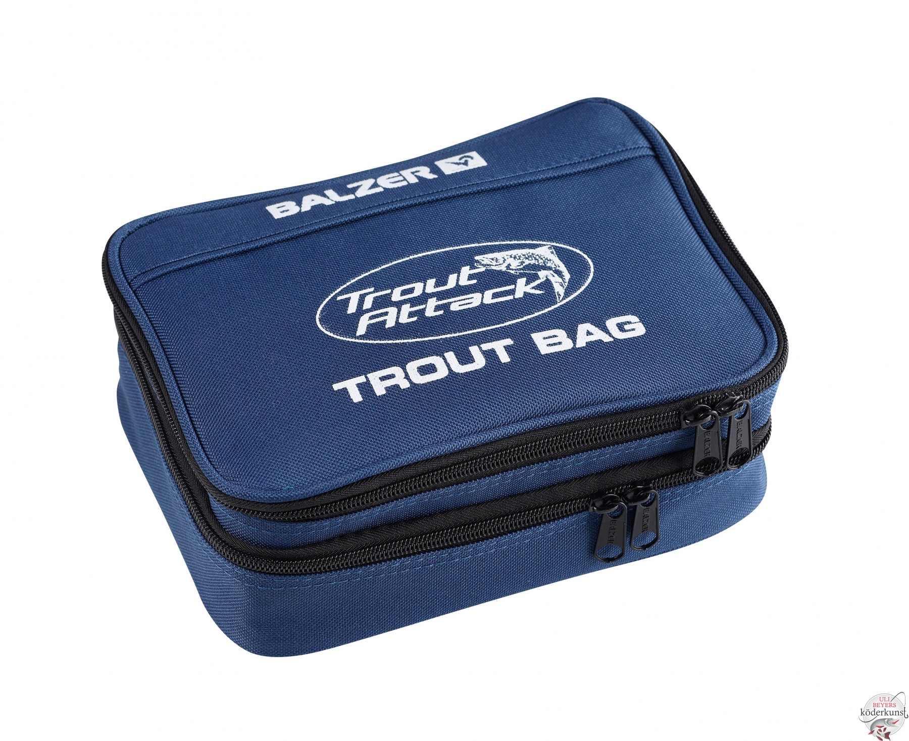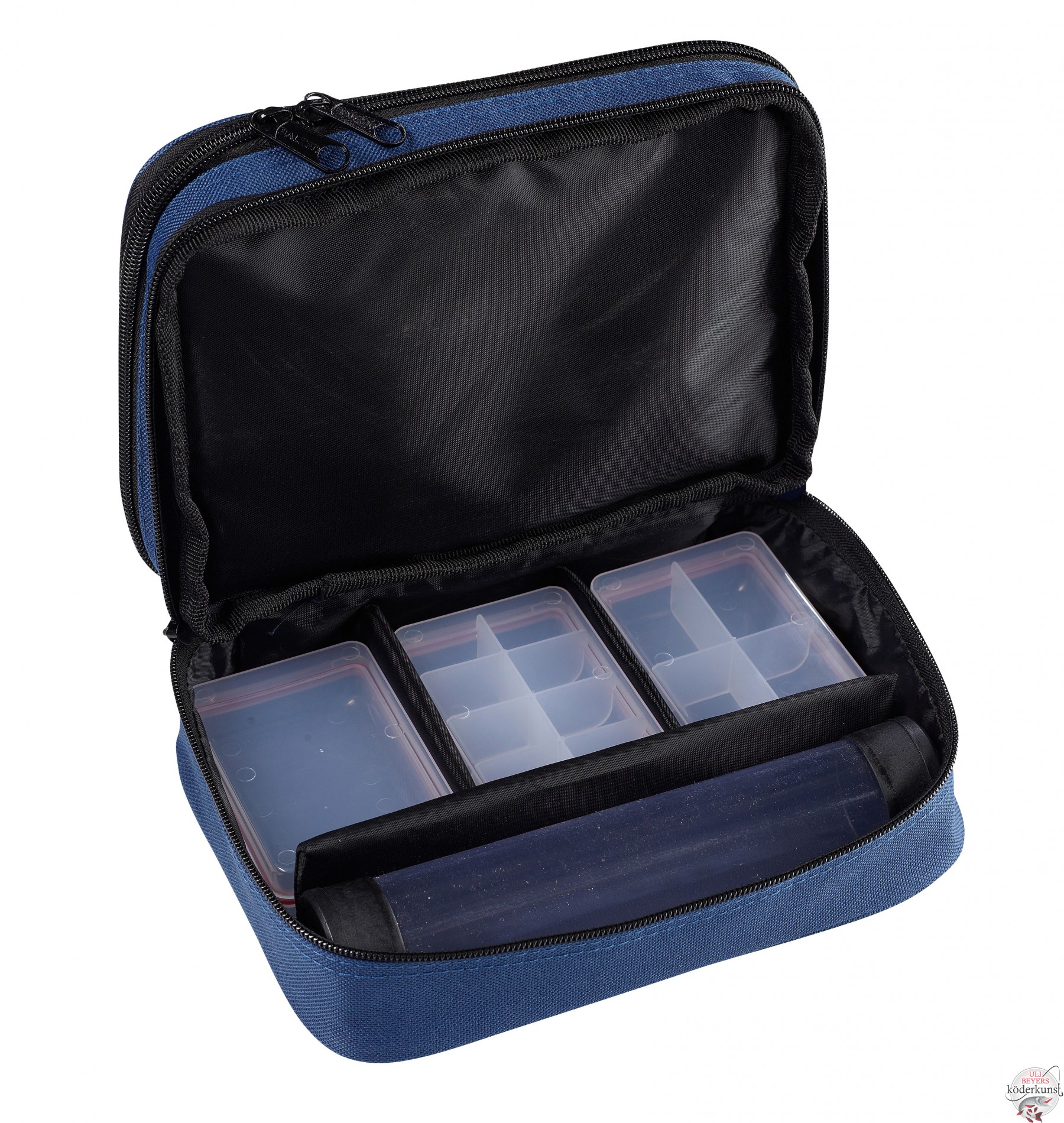 Sehr durchdachte Zubehörtasche für den Forellensee. Das obere Fach ist zur Aufbewahrung von Sbirolinos, im unteren befinden sich 3 Boxen für Kleinzubehör sowie ein Posenrohr zur sicheren Verwahrung von Posen, Sbirolinos etc.