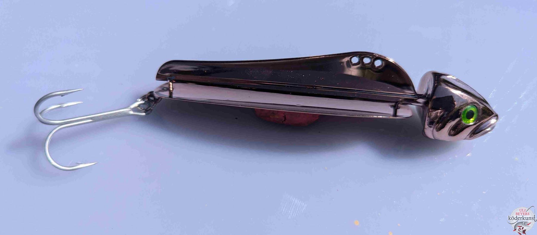 Bite Booster ist ein völlig neuartiger und äußerst vielseitiger Metallköder, der in der EU gefertigt wurde. Sein ausgefallenes und patentiertes Konstruktionsprinzip führte 2017 anlässlich der EFFTEX-Messe zum Gewinn des 1. Preises für den besten neuen Metallköder. Auch Uli Beyer ist begeistert von diesem neuen Köder, denn sein Lauf ist einmalig. Dieser Köder wurde in Kanada entwickelt und ausgiebig an verschiedensten Gewässern getestet. Bei unserer Neuvorstellung anlässlich der ersten Messen 2018 war die Resonanz vieler Angler sensationell und wir sind überzeugt, dass dieser Köder für viele Fische ein absoluter Gewinner wird, denn derartige Laufeigenschaften gab es noch nicht. Seien auch Sie bei den ersten Anglern, die diesen Köder probieren! Durch verschiedene Befestigungslöcher können unterschiedliche Laufeffekte erzielt werden: