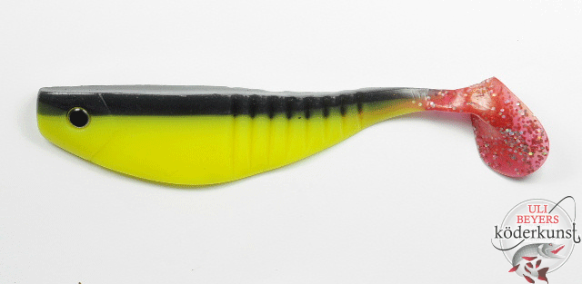 Diese Shads sind aus Profis Angelkasten nicht mehr wegzudenken. Der „Slottershad Spezial“ war von Anbeginn ein absoluter Erfolgsköder und hat besonders oft sensationelle Fänge gebracht. Gerade dann, wenn Räuber nicht so richtig gierig sind und eher langsam verführt werden müssen, wenn sie erst vorsichtig prüfen, bevor sie wild zupacken, dann sind diese Slottershads genau richtig. Das Erfolgsgeheimnis liegt in der Kombination des Gliederkettenprinzips (Kerbung im Schwanzteil) und der unübertroffenen Weichheit des Materials. Da werden auch härteste Räuber schwach und schnappen zu.