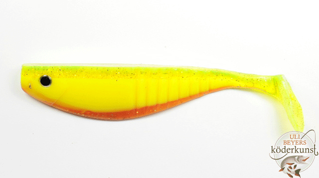 Diese Shads sind aus Profis Angelkasten nicht mehr wegzudenken. Der „Slottershad Spezial“ war von Anbeginn ein absoluter Erfolgsköder und hat besonders oft sensationelle Fänge gebracht. Gerade dann, wenn Räuber nicht so richtig gierig sind und eher langsam verführt werden müssen, wenn sie erst vorsichtig prüfen, bevor sie wild zupacken, dann sind diese Slottershads genau richtig. Das Erfolgsgeheimnis liegt in der Kombination des Gliederkettenprinzips (Kerbung im Schwanzteil) und der unübertroffenen Weichheit des Materials. Da werden auch härteste Räuber schwach und schnappen zu.