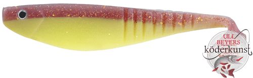 Diese Shads sind aus Profis Angelkasten nicht mehr wegzudenken. Der „Slottershad Spezial“ war von Anbeginn ein absoluter Erfolgsköder und hat besonders oft sensationelle Fänge gebracht. Gerade dann, wenn Räuber nicht so richtig gierig sind und eher langsam verführt werden müssen, wenn sie erst vorsichtig prüfen, bevor sie wild zupacken, dann sind diese Slottershads genau richtig. Das Erfolgsgeheimnis liegt in der Kombination des Gliederkettenprinzips (Kerbung im Schwanzteil) und der unübertroffenen Weichheit des Materials. Da werden auch härteste Räuber schwach und schnappen zu.