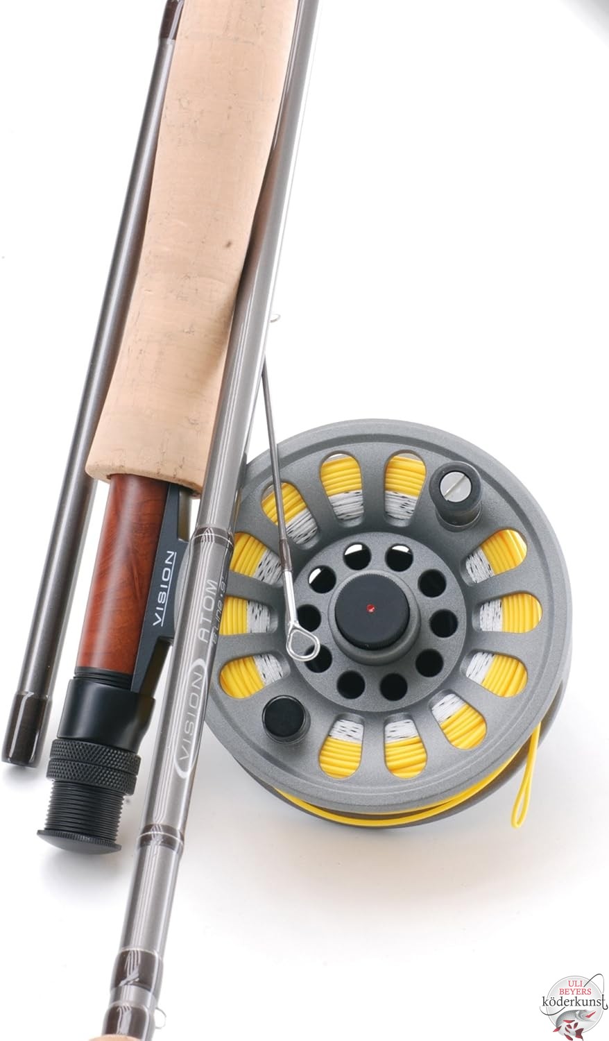 Das Atom-Set besteht aus einer dreiteiligen Atom-Rute mit mittlerer bis schneller Aktion, einer Deep-Aluminiumrolle mit tiefer Spule und einer hochwertigen Schwimmschnur.