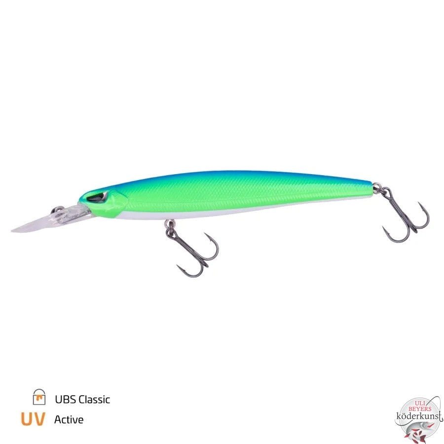 Durch ein spezielles Weight Transfer System kannst du den stromschnittigen Wobbler weit werfen. Gleichzeitig ist er aber lautlos, was in den meisten Gewässern enorm wichtig ist.Bitte beachten: Die flach laufenden Modelle (0,5 + 0,7m) haben eine kürzere Tauchschaufel als die "tiefer" laufenden Modelle (1,4 und 2m). Auf den Fotos sind jeweils ein Flach- und ein "Tiefläufer" abgebildet.