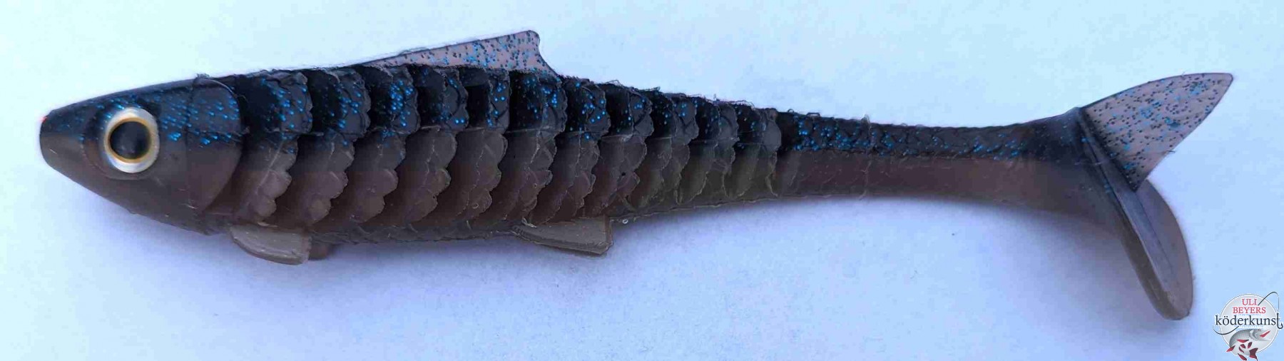 Der Rippler stammt aus Ulis Ideensammlung. Ziel war es, eine große Silhouette bei geringem Gewicht mit optimalen Laufeigenschaften zu kombinieren. Die aufwendig geformten Rippen haben eine echte Herausforderung im Formenbau dargestellt. Der Baby Rippler ist der kleinste Köder dieser Familie. Er stellt einen universellen Allesfänger dar, der schon in der Testphase aufhorchen ließ.