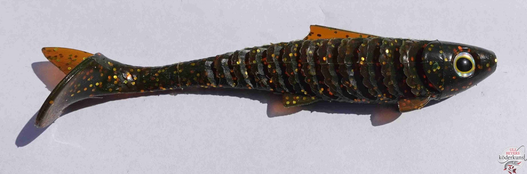 Der Rippler stammt aus Ulis Ideensammlung. Ziel war es, eine große Silhouette bei geringem Gewicht mit optimalen Laufeigenschaften zu kombinieren. Die aufwendig geformten Rippen haben eine echte Herausforderung im Formenbau dargestellt. Der Baby Rippler ist der kleinste Köder dieser Familie. Er stellt einen universellen Allesfänger dar, der schon in der Testphase aufhorchen ließ.